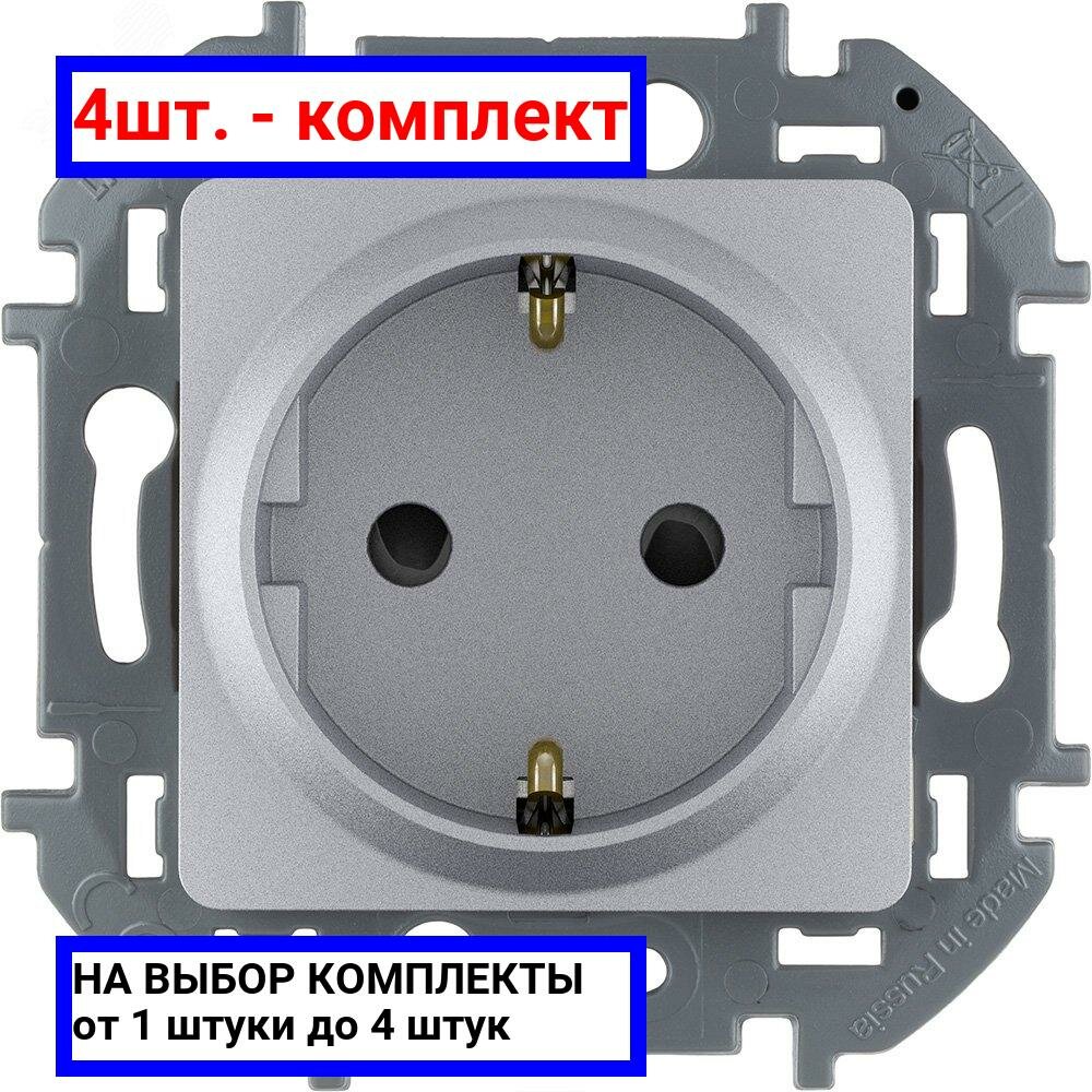 4шт. - Розетка 2К+З со шторками немецкий стандарт 16 А 250 В~ INSPIRIA алюминий / Legrand; арт. 673732; оригинал / - комплект 4шт информация: