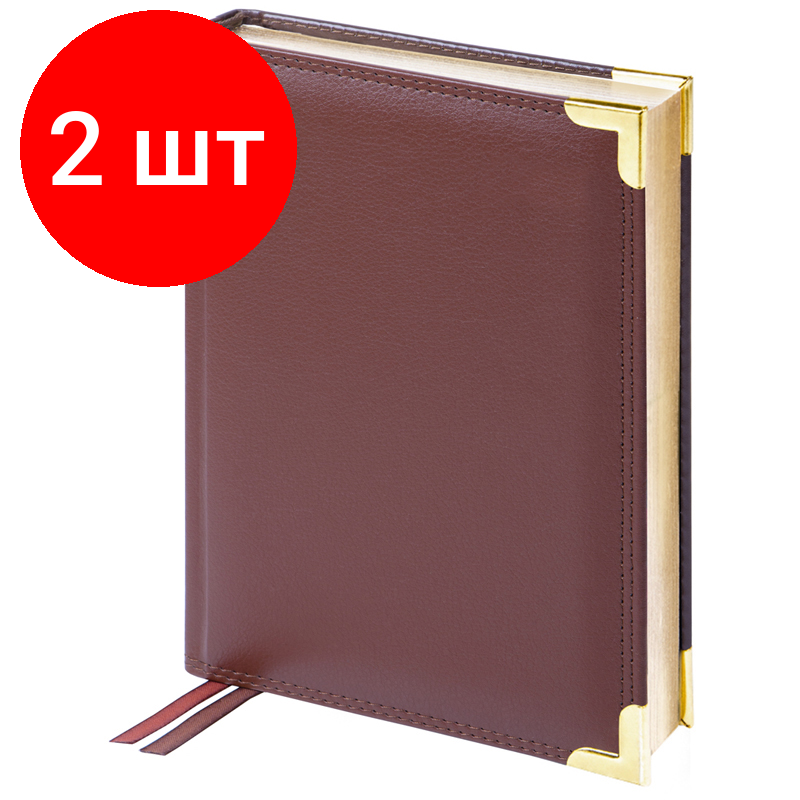 Комплект 2 шт, Ежедневник недатированный, А6, 160л, кожа, Delucci, фактурная кожа, коричневый, зол. срез 2 424 ₽