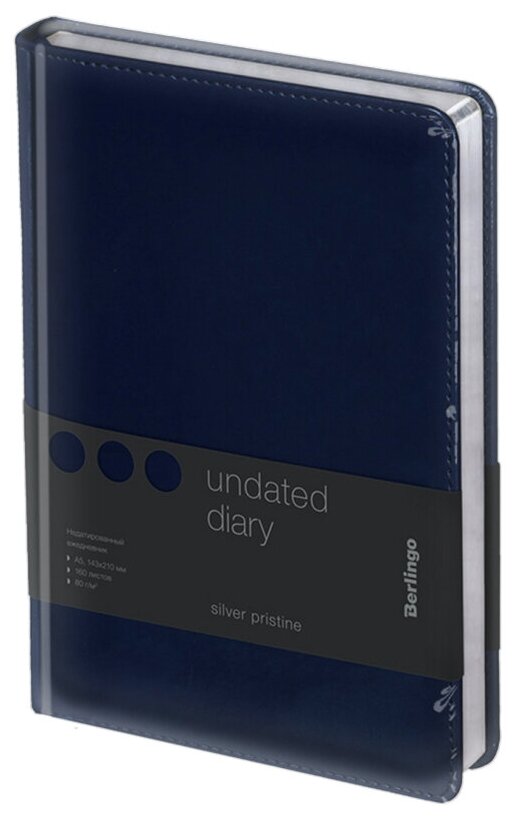 Ежедневник недатированный А5, 160 листов, Berlingo "Silver Pristine". Блокнот/ планер/ записная книжка в линейку, под кожу, серебряный срез, синий, в подарок информация: