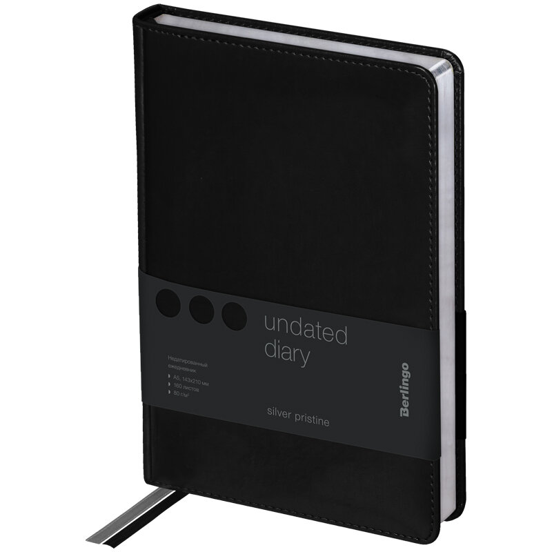 Ежедневник недатированный Berlingo A5, 160 листов, кожзам, "Silver Pristine", серебряный срез, черный (UD0_82501)