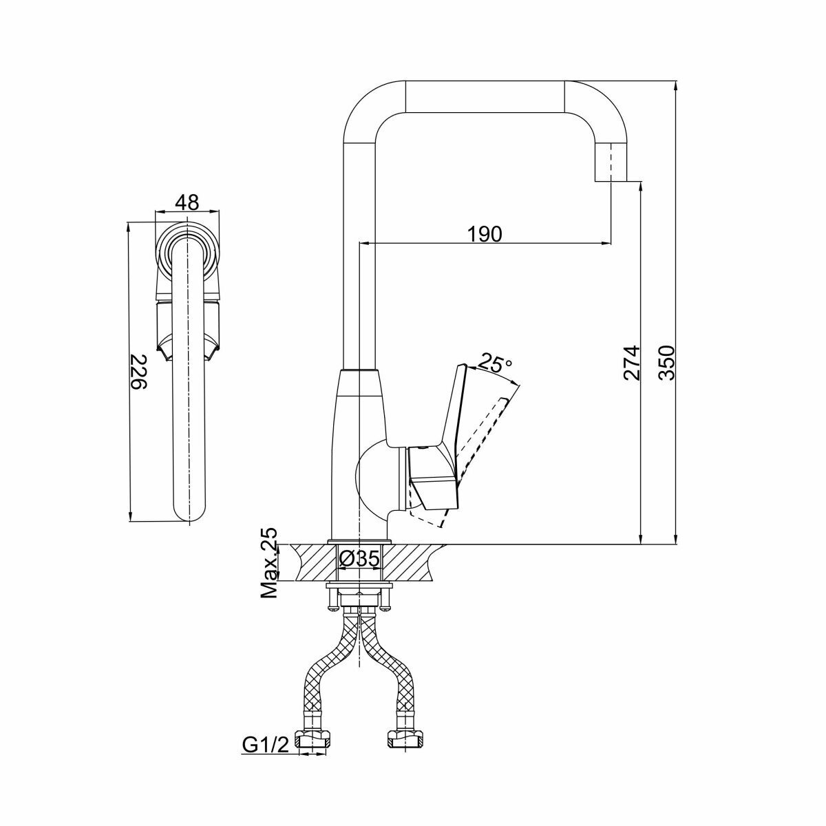 Смеситель для кухни с подключением к фильтру с питьевой водой из нержавеющей стали SUS304 Calorie CAL50116-3