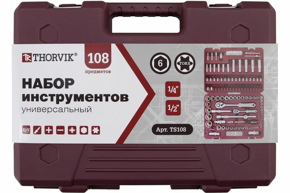 10 цен на Набор инструмента для автомобиля и для дома, THORVIK 1/4", 1/2"DR 108 предметов, Инструменты для ремонта, универсальный, TS108