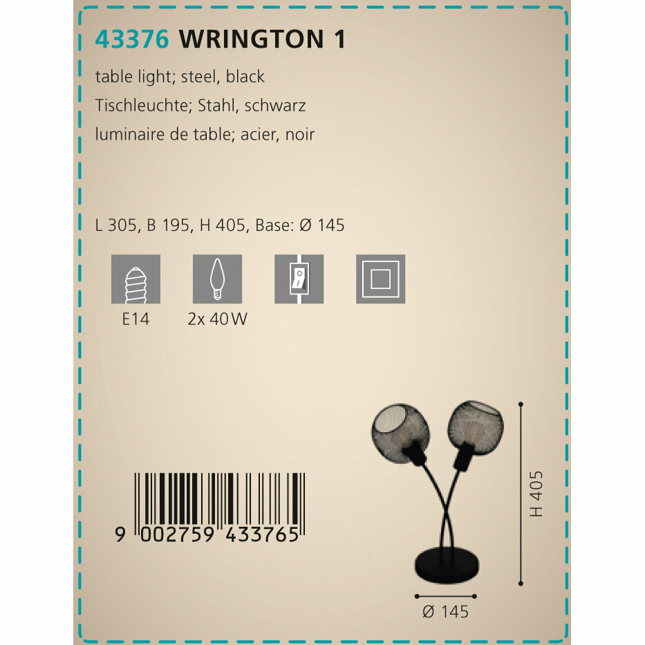 Настольная лампа Eglo Wrington 1 43376, Черный, E14 80