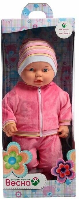 | Дополнительная информация | в комплект одежды входит: футболка, брюки, куртка, шапочка, носки, трусики; конструкция куклы позволяет её сажать, переодевать |