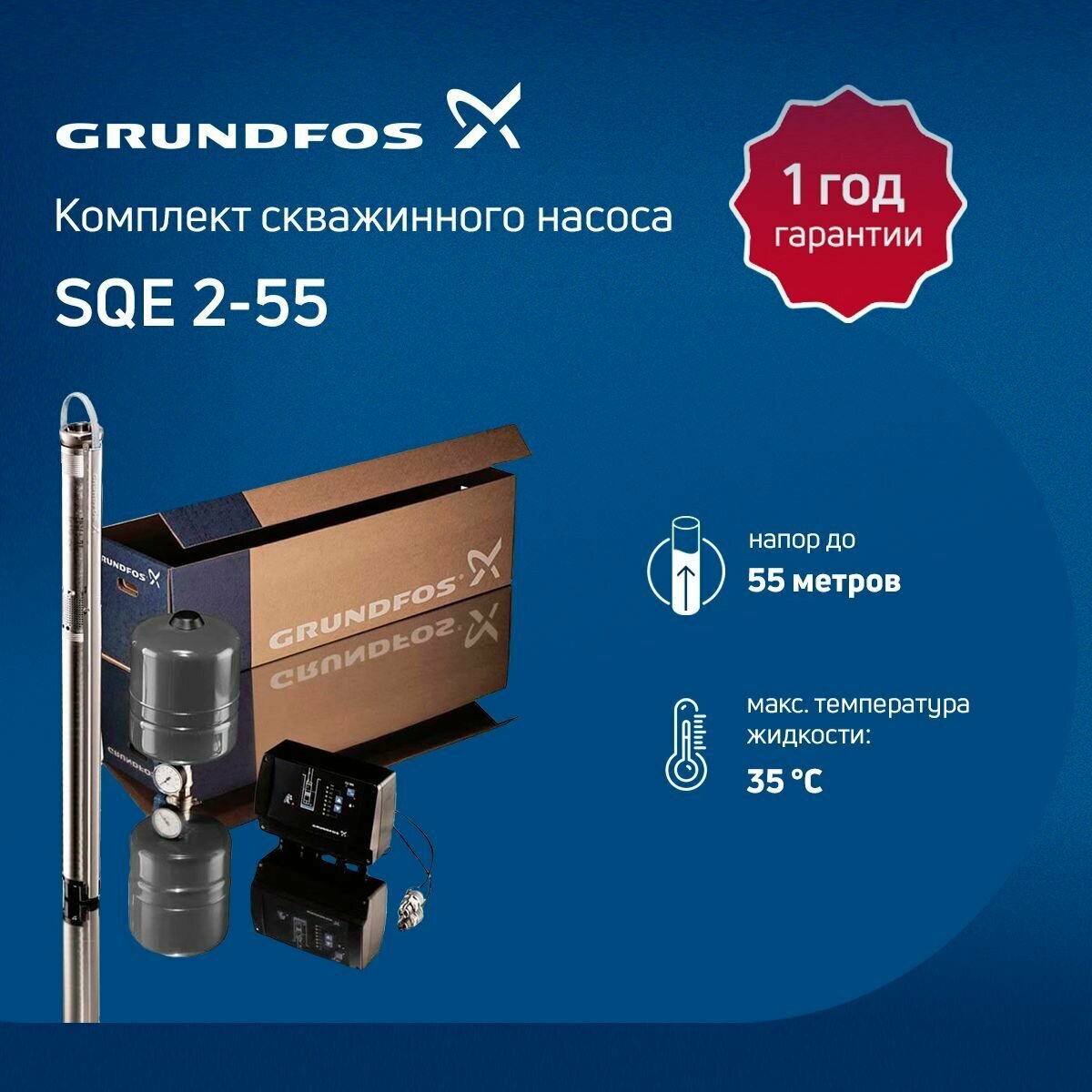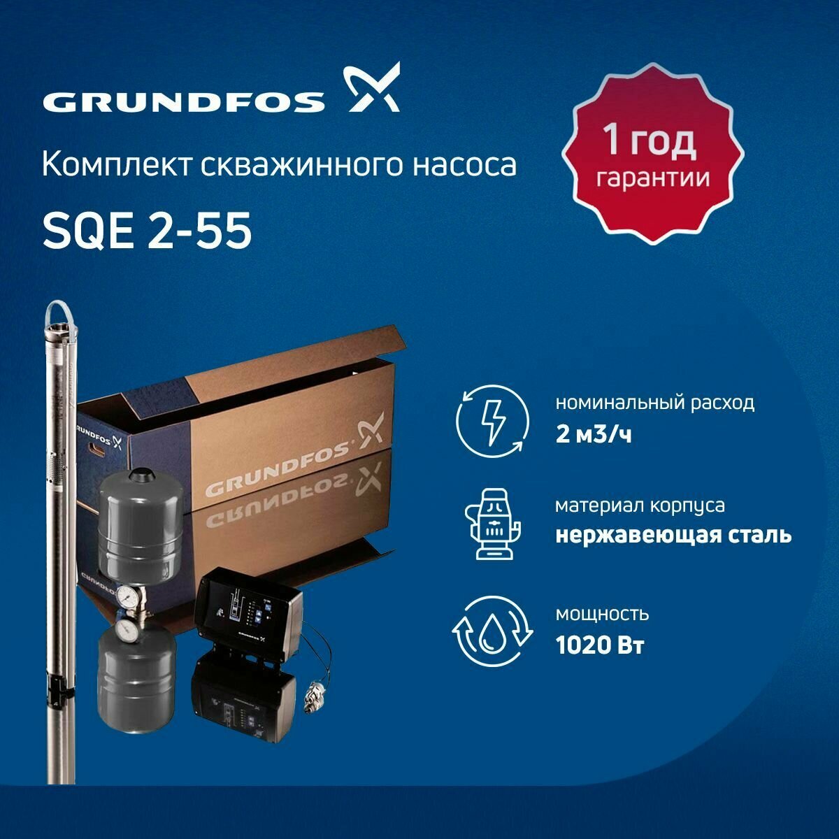 Отзывы на Комплект скважинного насоса Grundfos SQE 2-55 (кабель 40 м, 3 x 1,5 мм)