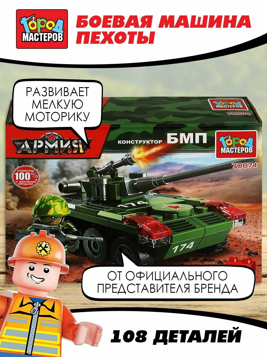 Отзывы на Конструктор Город Мастеров "Боевая машина пехоты", 108 деталей, пластмассовый, 70074-CY (347664)