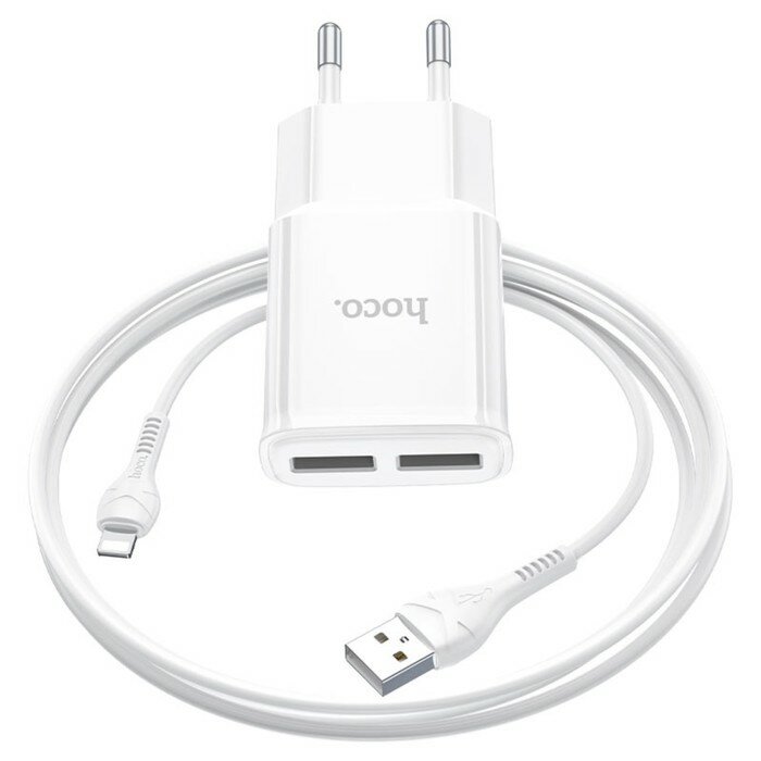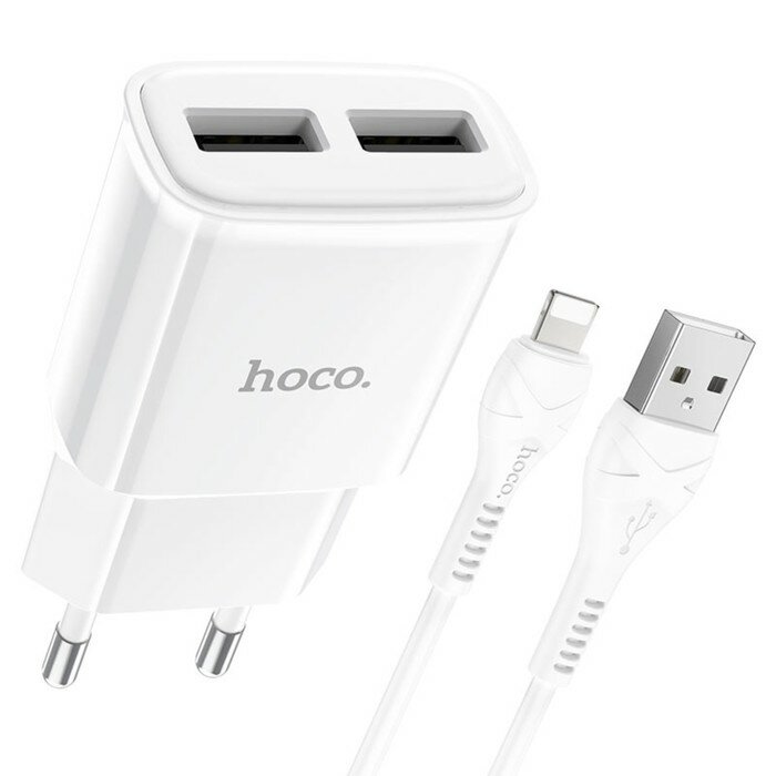 10 цен на Hoco Сетевое зарядное устройство Hoco C88A, 2 USB, 2.4 А, кабель Lightning - USB, 1 м, белый