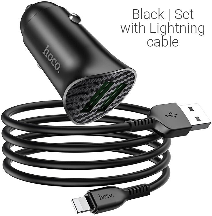 Автомобильное зарядное устройство с 2 USB HOCO Z39, QC3.0 + кабель Lightning, black