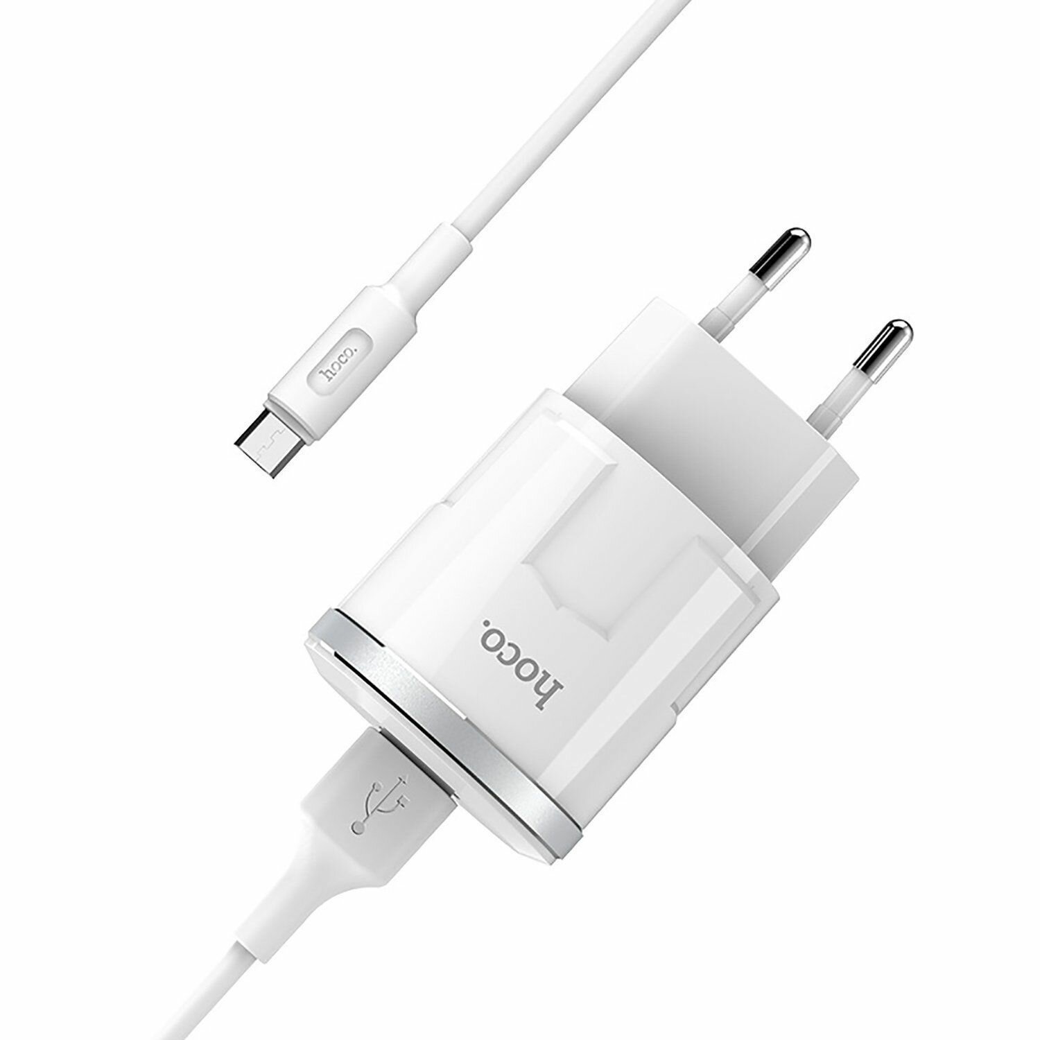 Сетевое зарядное устройство Hoco C37A + кабель microUSB, белый