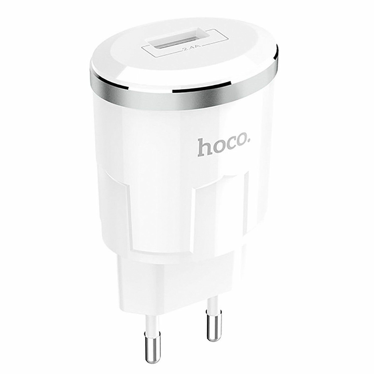 Сетевое зарядное устройство USB Hoco C37A (2.4A/кабель microUSB) <белый>