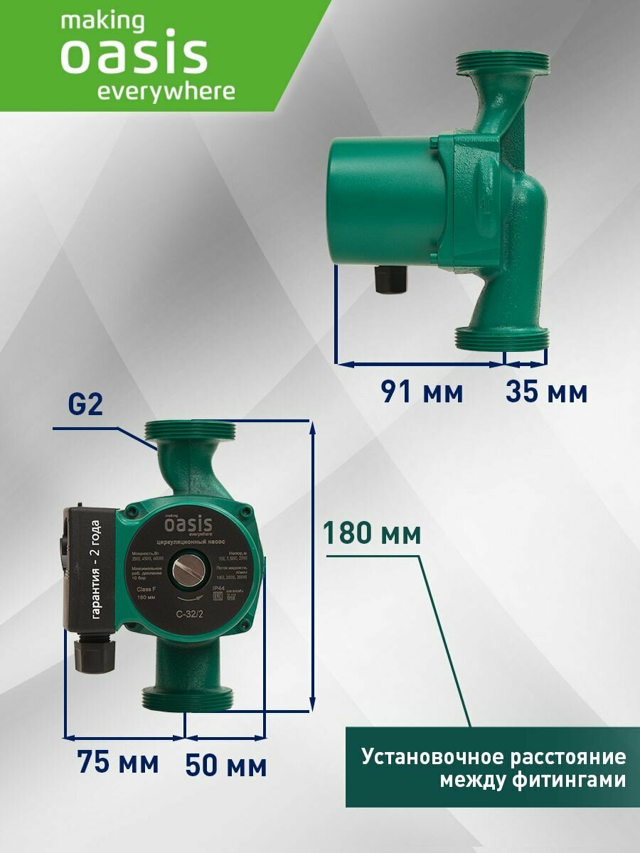 Насос циркуляционный для отопления making Oasis everywhere C-32/2, 60 Вт, напор 2 м, 30 л/мин 2 950 ₽