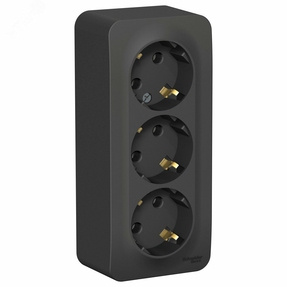 3шт. - Розетка BLANCA наружная трехпостовая, с заземлением, без шторок, с изолирующей пластиной, 16А, 250В, антрацит / Systeme Electric; арт. BLNRA010316; оригинал / - комплект 3шт информация: