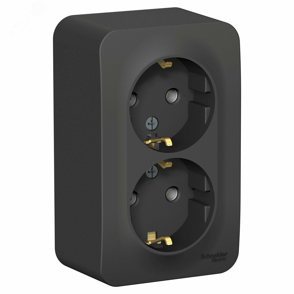 Розетка двойная Systeme (Schneider) Electric Blanca BLNRA010216, накладная, с/з, антрацит 293 ₽