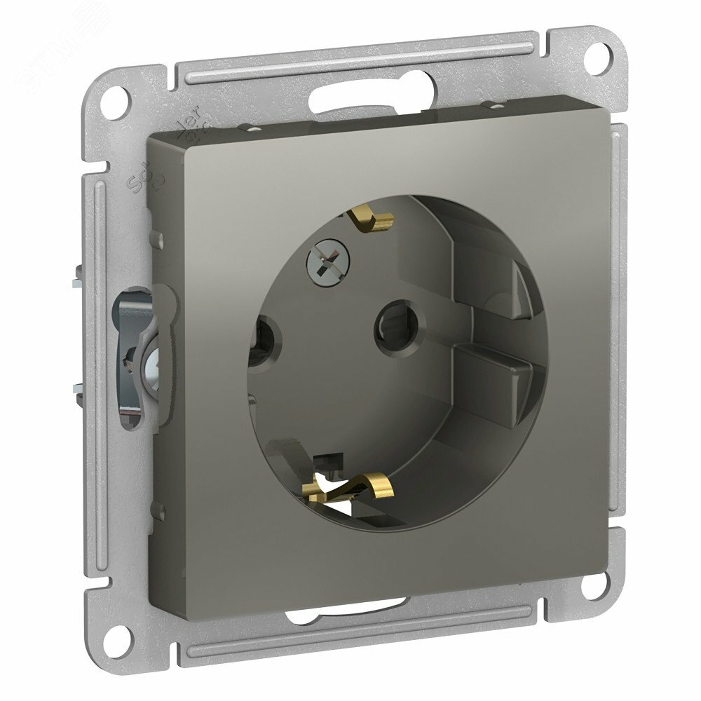 ATLASDESIGN Розетка с заземлением со шторками, 16А, механизм, сталь Schneider Electric ATN000945