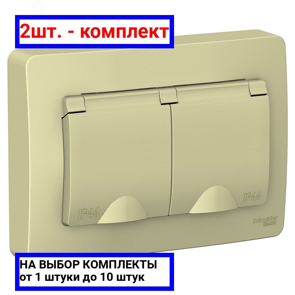 10 цен на 2шт. - Розетка BLАNCА двойная, скрытой установки, IP44, с заземлением, со шторками, с крышками, 16А, 250В, бежевый / Systeme Electric; арт. BLNRS441127; оригинал / - комплект 2шт