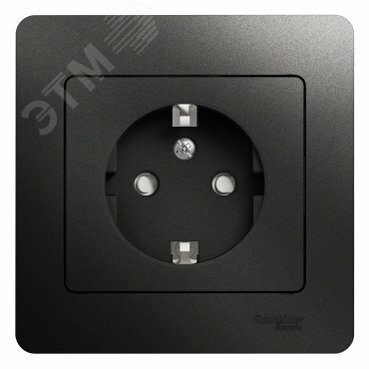 Розетка Systeme Electric (schneider Electric) SCHNEIDER ELECTRIC GLOSSA с заземлением со шторками, в сборе, антрацит