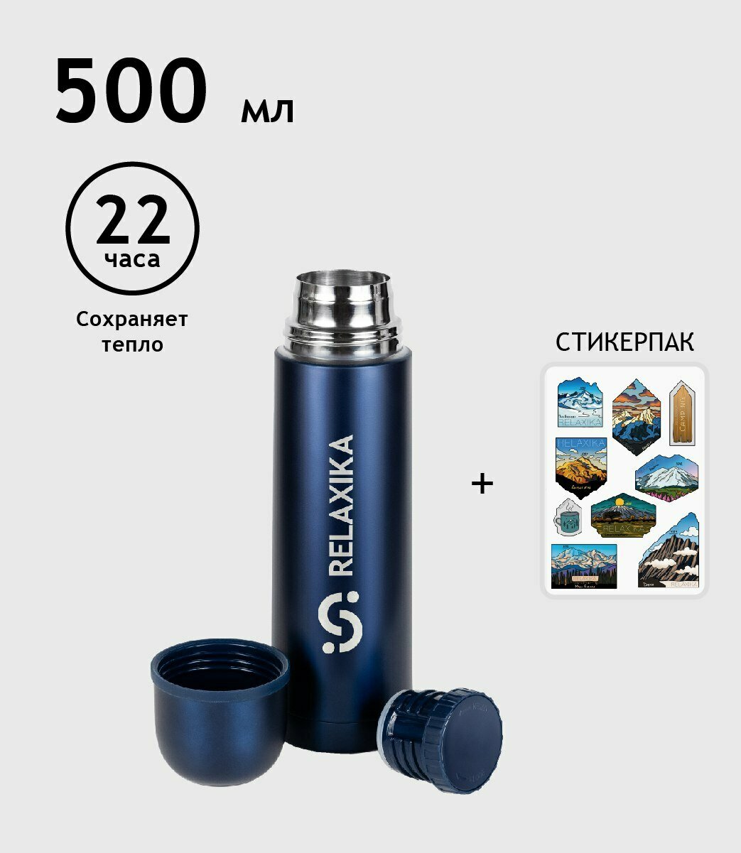 Отзывы на Термос Relaxika 101 (0,5 литра), темно-синий (стикерпак "7 вершин")