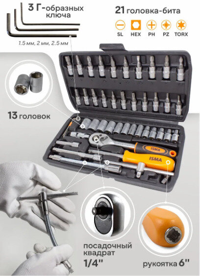 10 цен на Набор инструментов 46пр. 1/4" ISMA 2462-5