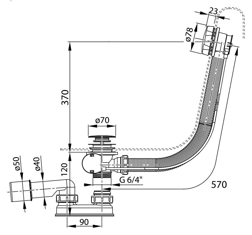 Сифон для мойки большая горловина с переливом, с отводом под сливной шланг и со съёмной корзинкой для мусора