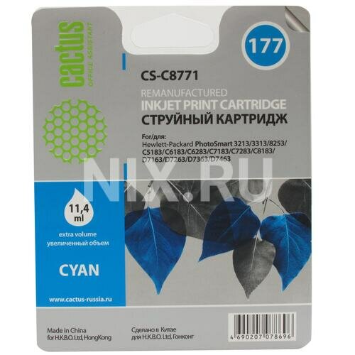 Cactus Расходные материалы C8771 Картридж струйный CS-C8771 голубой для 177 HP PhotoSmart 3213 3313 8253 C5183 C6183 11,4ml
