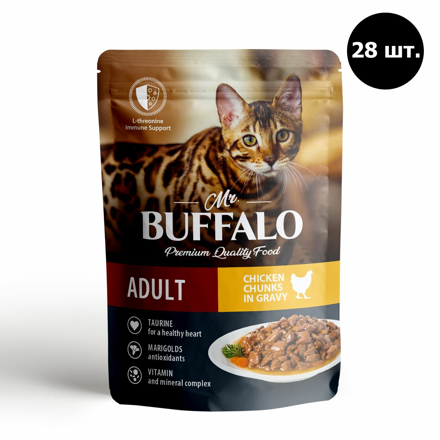 Mr.Buffalo Adult влажный корм для взрослых кошек с цыпленком в соусе, в паучах - 85 г х 28 шт