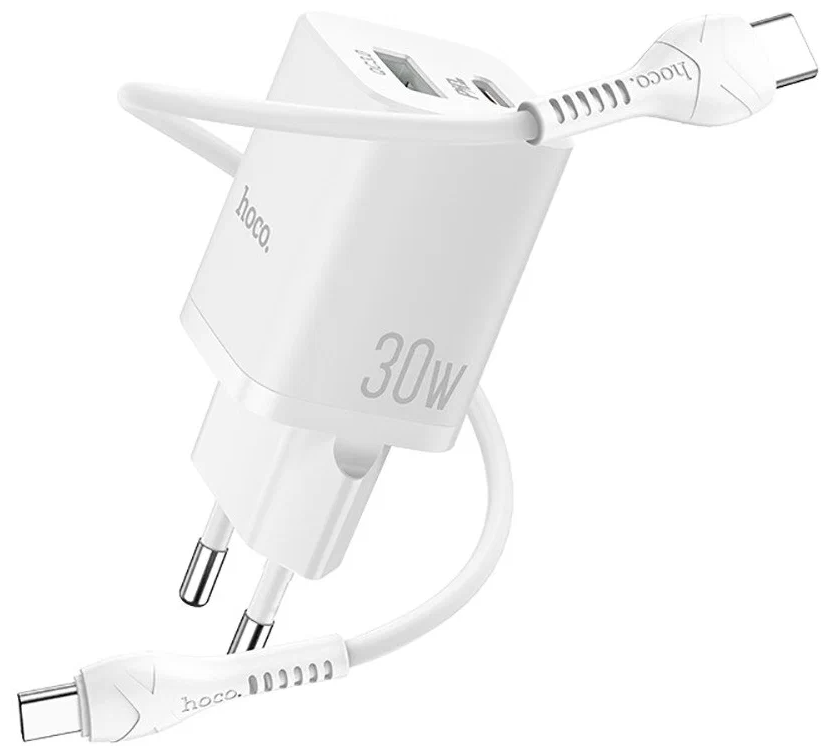 Сетевое зарядное устройство Hoco N13, USB+USB-C, PD+QC3.0, 30W c Кабелем Type-C to Type-C, 1m, Белый