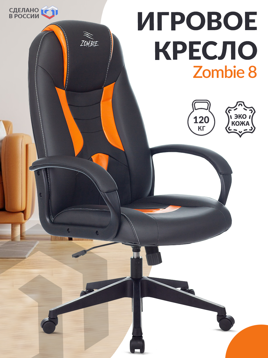 Отзывы на Кресло игровое Zombie 8 черный/оранжевый, экокожа / Компьютерное геймерское кресло, крестовина пластик