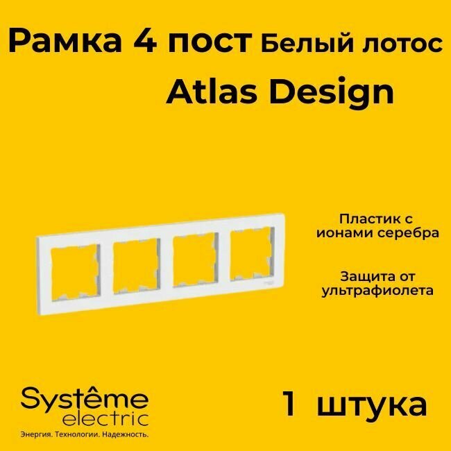 Рамка четырехместная для розеток и выключателей Schneider Electric (Systeme Electric) Atlas Design белый лотос ATN001304 - 1 шт. информация: