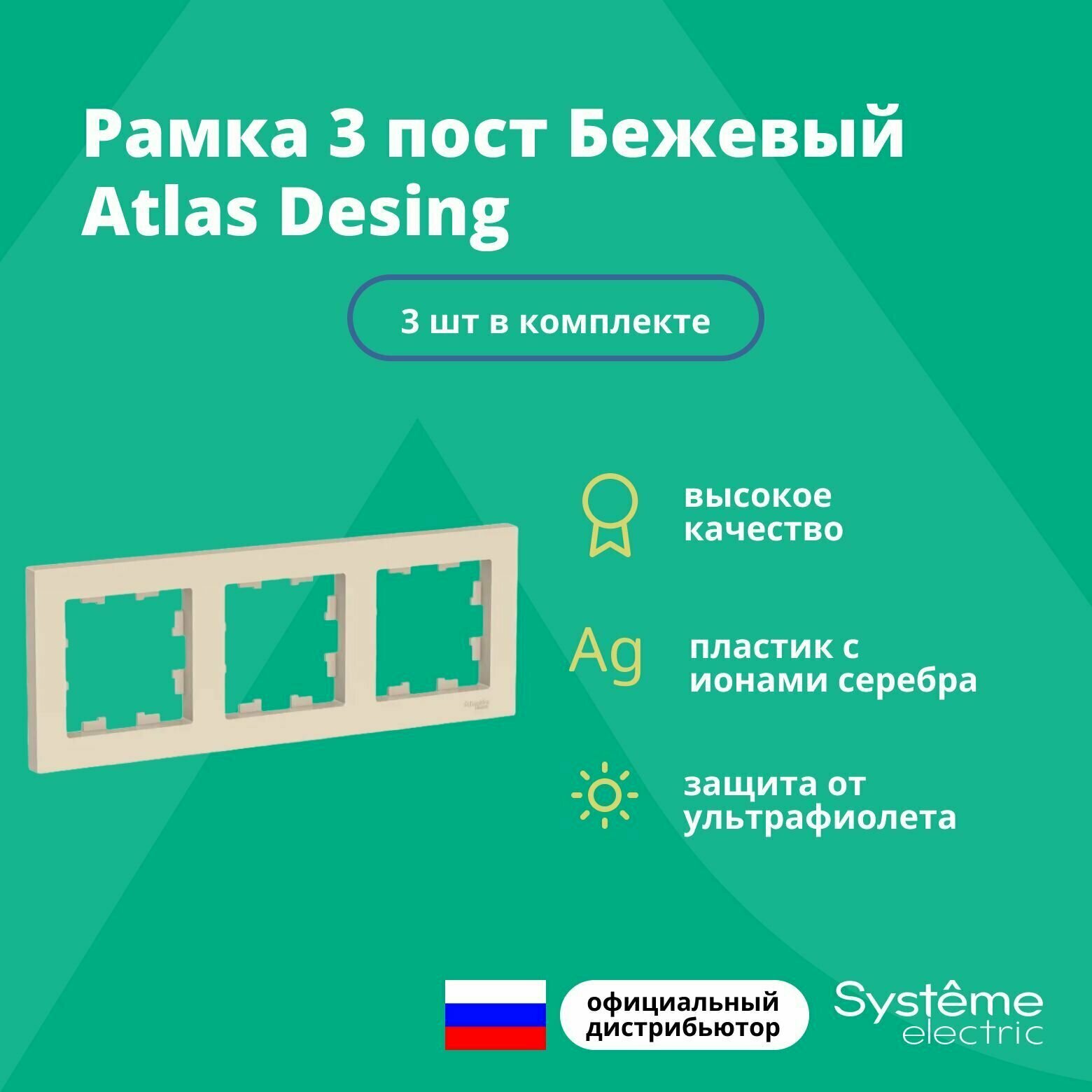 Schneider Electric ATLASDESIGN 3-постовая рамка, универсальная, бежевый ATN000203 комплект 3 шт. информация: