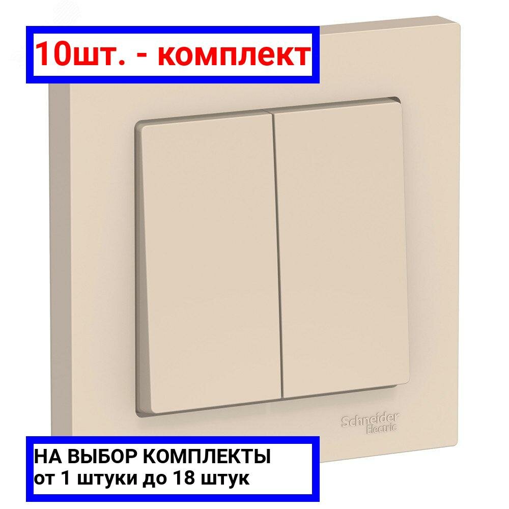 Выключатель 2-клавишный бежевый сх.5, 10АХ, в сборе Schneider Electric AtlasDesign (комплект 2шт)