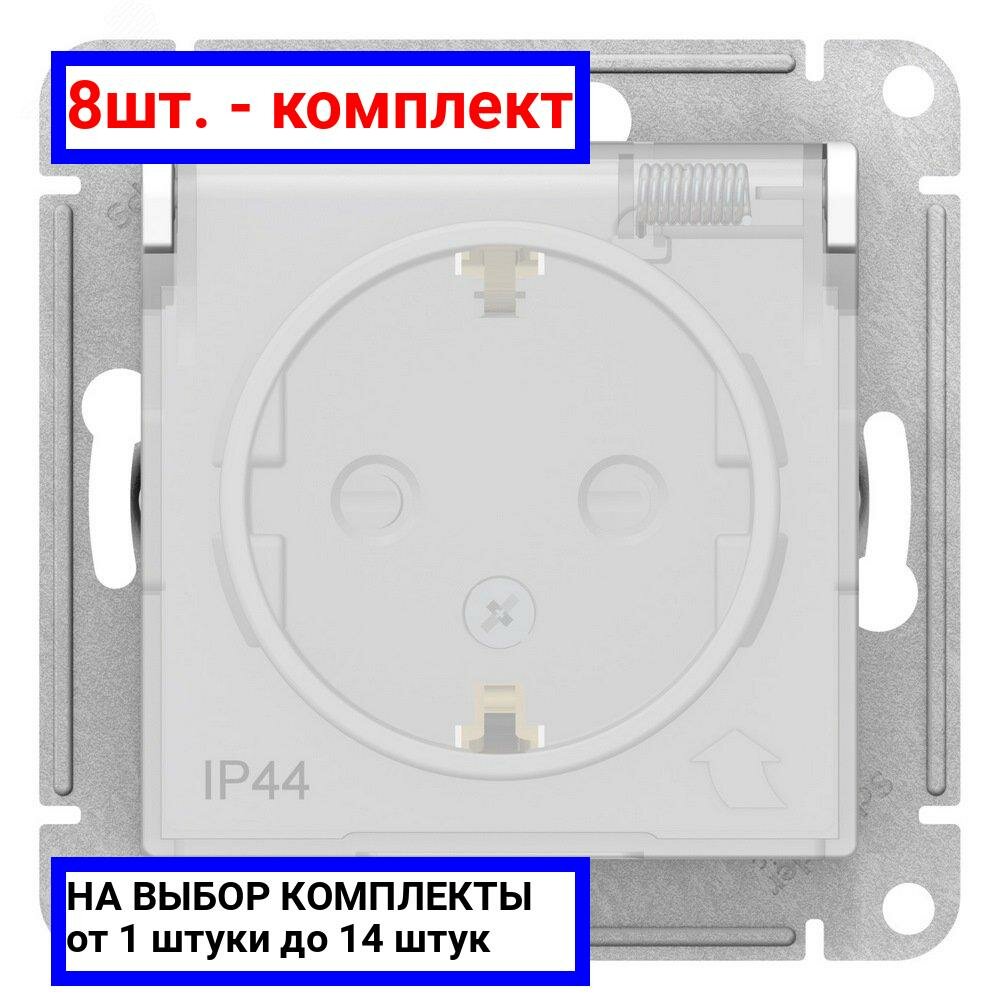 10 цен на 8шт. - Розетка ATLASDESIGN AQUA с заземлением со шторками с крышкой 16А IP44 механизм белый / Systeme Electric; арт. ATN440146; оригинал / - комплект 8шт