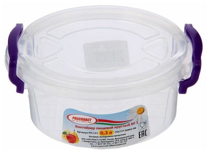 Русспласт Контейнер №1 0.3 л RP-151, 12x12 см, прозрачный/синий информация: