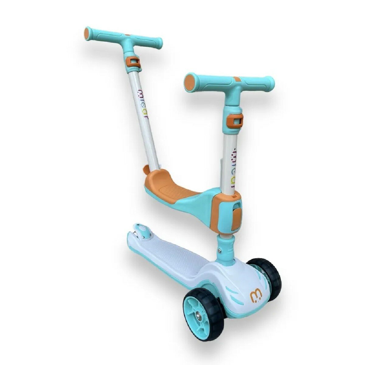 Детский трёхколёсный самокат 3 в 1 Scooter Micar Transformer складной, с сиденьем, родительской ручкой и светящимися колёсами Мятный 5 990 ₽