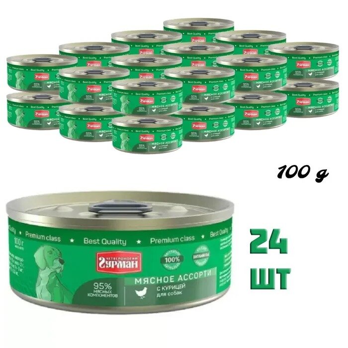 Четвероногий Гурман консервы для собак Мясное ассорти с Курицей 100г (24 штуки) информация: