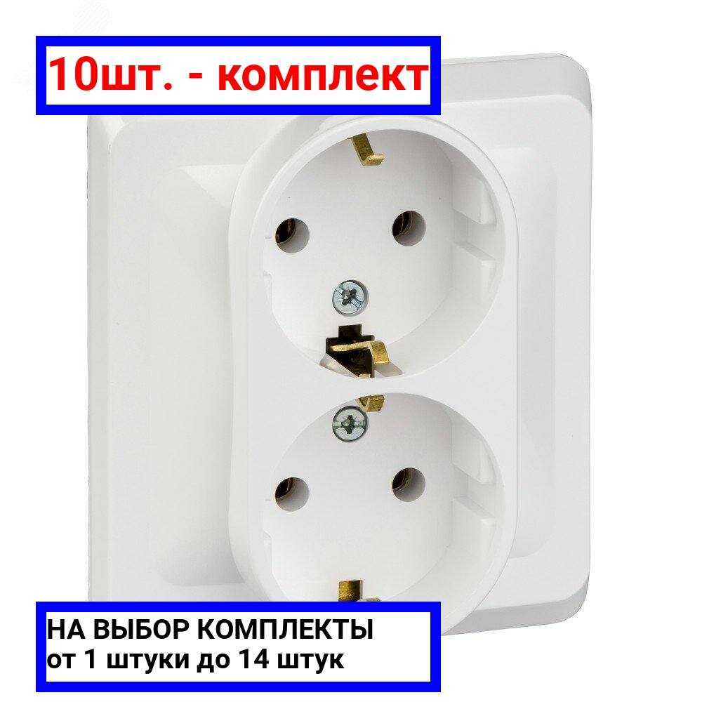 10 цен на 10шт. - Этюд Розетка двойная скрытая с заземлением без шторок белая / Systeme Electric; арт. PC16-007B; оригинал / - комплект 10шт