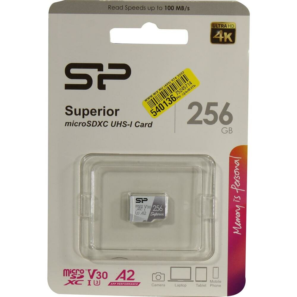 Карта памяти microSDXC 256ГБ Class10 Silicon Power Superior UHS-I U3 (sp256gbstxda2v20) информация: