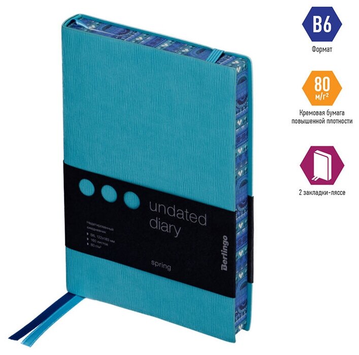 Ежедневник недатированный Berlingo B6, 160 листов, кожзам, "Spring", полноцветный срез, голубой (UD0_88604)