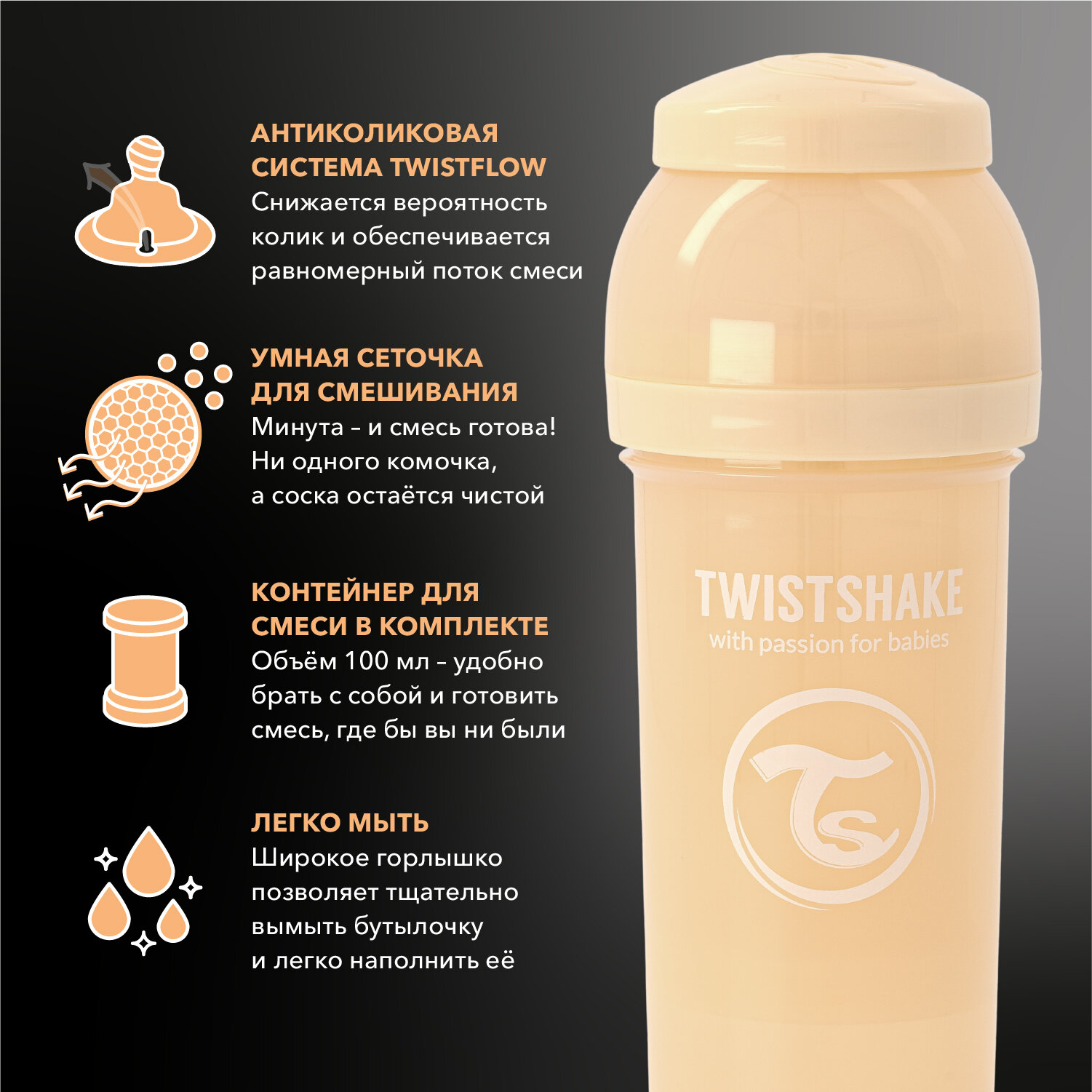 Отзывы на Детская антиколиковая бутылочка Twistshake для кормления, 260 мл, от 2+ мес. Карамельный бежевый