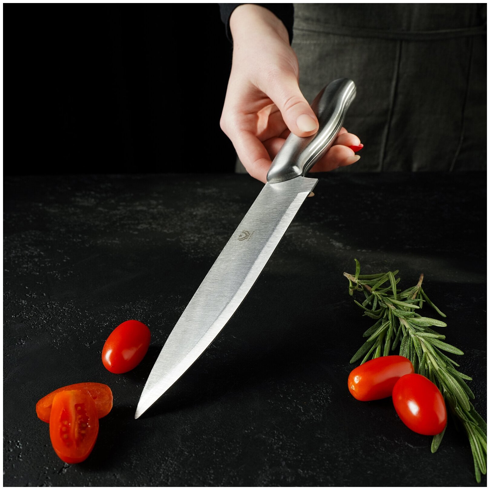 Нож кухонный «Металлик», лезвие 22,5 см, цвет серебристый
