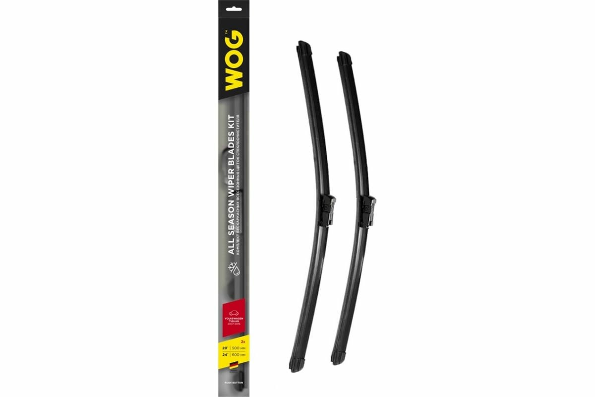 WOG WGC1416 Щетка стеклоочистителя 600/500 Комплект всесезонных бескаркасных бесшумных щеток стеклоочистителя 600мм/24+500мм/20 (TIGUAN) с креплением Push Button, 2 шт.