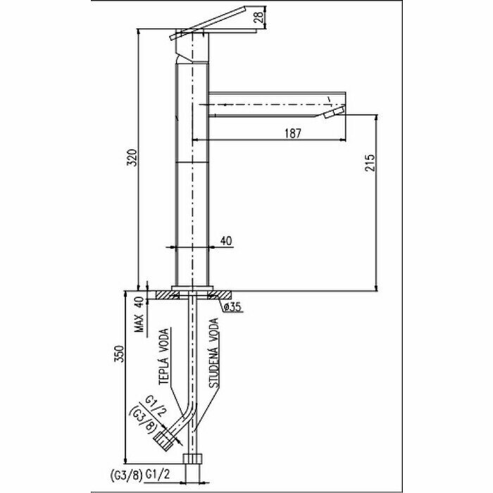 | Длина излива | 187 мм |