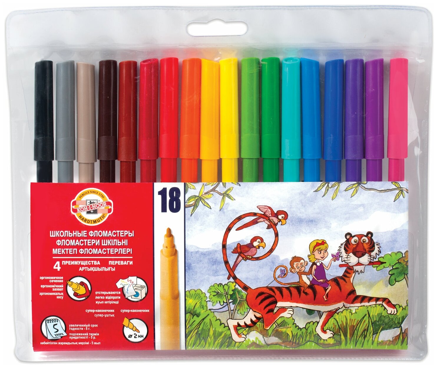 Фломастеры смываемые 18 цветов Koh-I-Noor "Звери", трехгранные, 1 упаковка