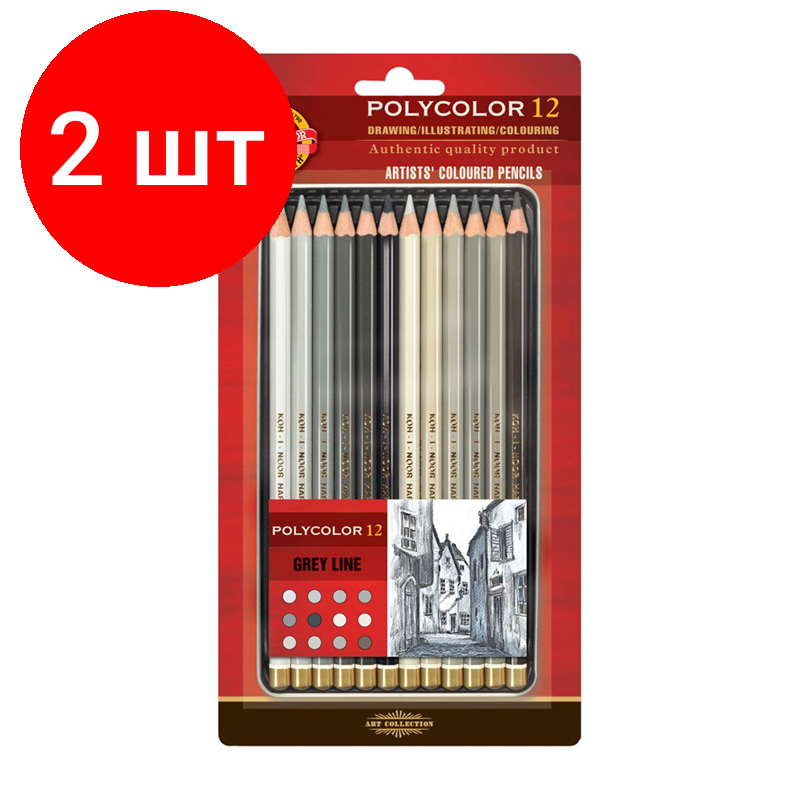 Комплект 2 шт, Карандаши цветные художественные Koh-I-Noor "Polycolor Grey Line", 12цв., заточен., металл. пенал, блистер информация: