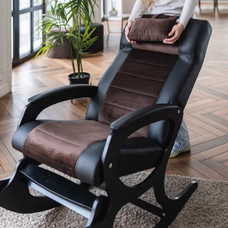 Отзывы на Кресло качалка для взрослых, классическая для дома и для дачи, велюр и кожзам коричневый