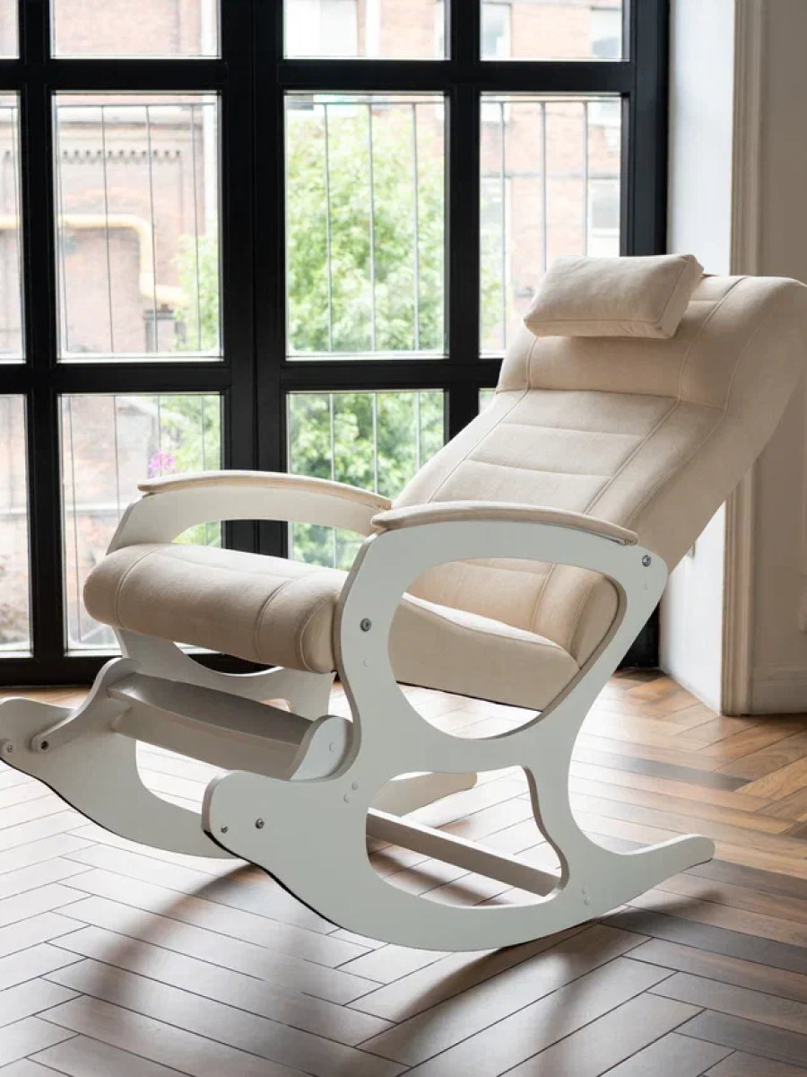 Кресло качалка для взрослых, классическая для дома и для дачи, велюр молочный 23 000 ₽