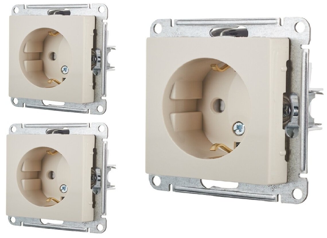 10 цен на Розетка ATLASDESIGN, скрытый монтаж, с заземлением, со шторками, бежевый | код. ATN000245 | Schneider Electric (3шт.в упак.)