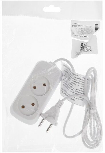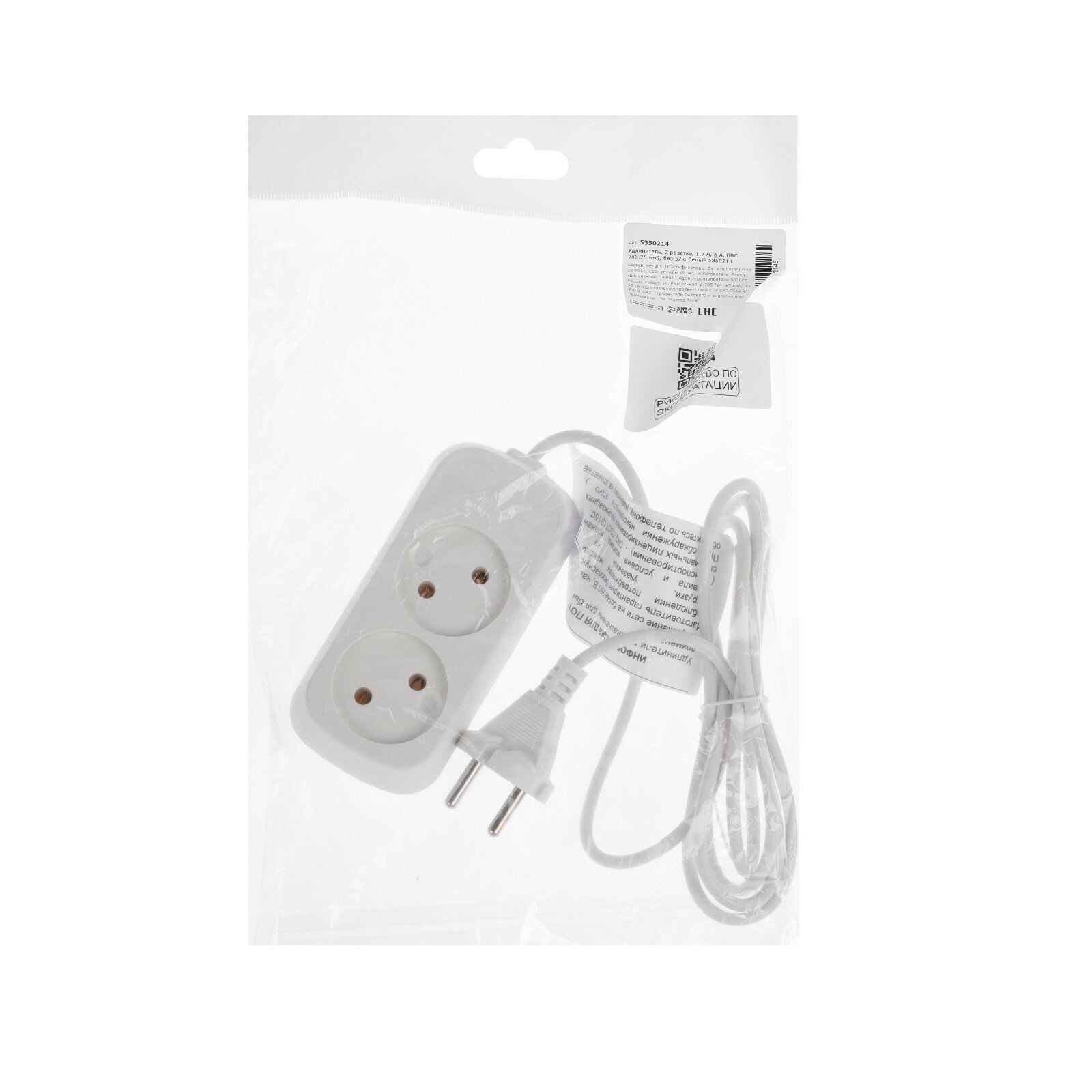 Удлинитель 2 розетки, 1.7 м, 6 А, ПВС 2х0.75 мм2, без з/к, белый информация: