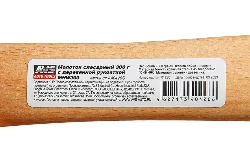 Молоток 800гр AVS с дерев рукояткой MHW800 A40428S информация: