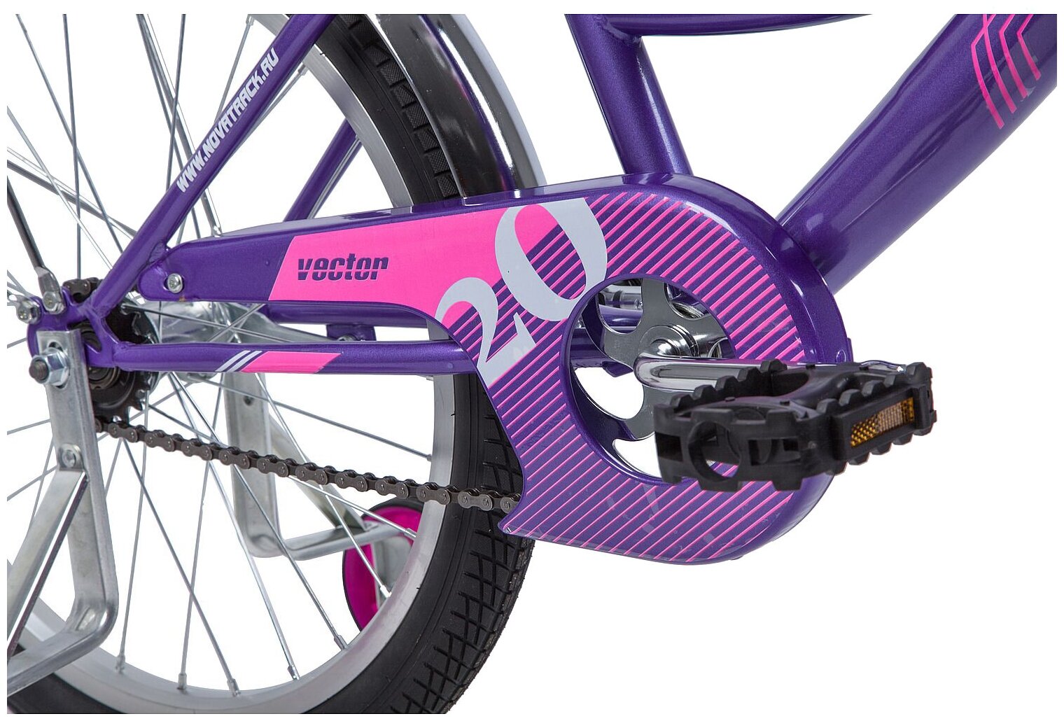 Велосипед NOVATRACK 20", VECTOR 2019, лиловый, защита А-тип, тормоз нож., крылья и багажник хром. информация: