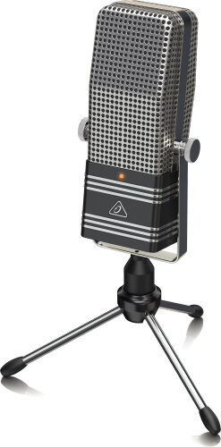 Behringer BV44 винтажный броадкастовый конденсаторный USB-микрофон из 1940-х, суперкардиоидный, диафрагма 14 мм, 50-17000 kHz, SPL 132 дБ, со стойкой